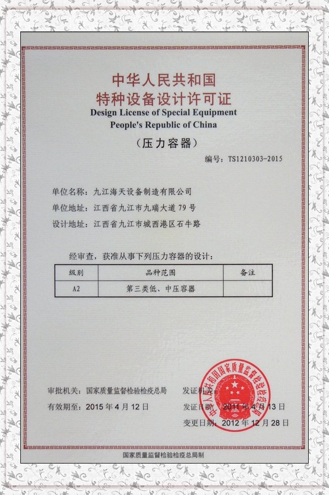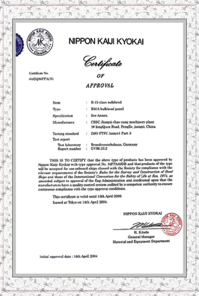 公司所屬單位系國家高新技術企業(yè),取得了ISO9000、ISO14000、OHSAS18000等體系認證;獲得LR、DNV、NK、GL、ABS、BV、EC和CCS等船級社工廠或產(chǎn)品認可,擁有多項自主知識產(chǎn)權。公司設有檢測和校準實驗室、型式試驗中心和火災仿真實驗室、江西省消防工程技術研究中心、江西省慣性測試工程技術研究中心、江西省環(huán)保產(chǎn)品認定檢驗中心、熱能技術聯(lián)合研發(fā)中心、九江中船消防設備有限公司院士工作站等科研平臺,具備消防專業(yè)施工壹級資質(zhì)、消防設施設計甲級資質(zhì)和3CF強制性認證證書;國家A1及A2級壓力容器、A5級醫(yī)用氧艙、三菱和萊頓船用鍋爐的設計和制造許可證等資質(zhì),且獲得國家工商行政總局守合同重信用企業(yè)公示單位。